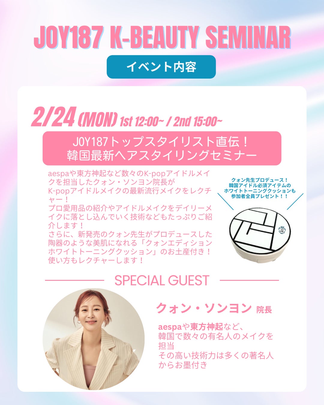 JOY187トップスタイリスト直伝!韓国最新ヘアスタイリングセミナー ★ポストリカバリートリートメント&ヘアスタイリング体験抽選参加権付き★