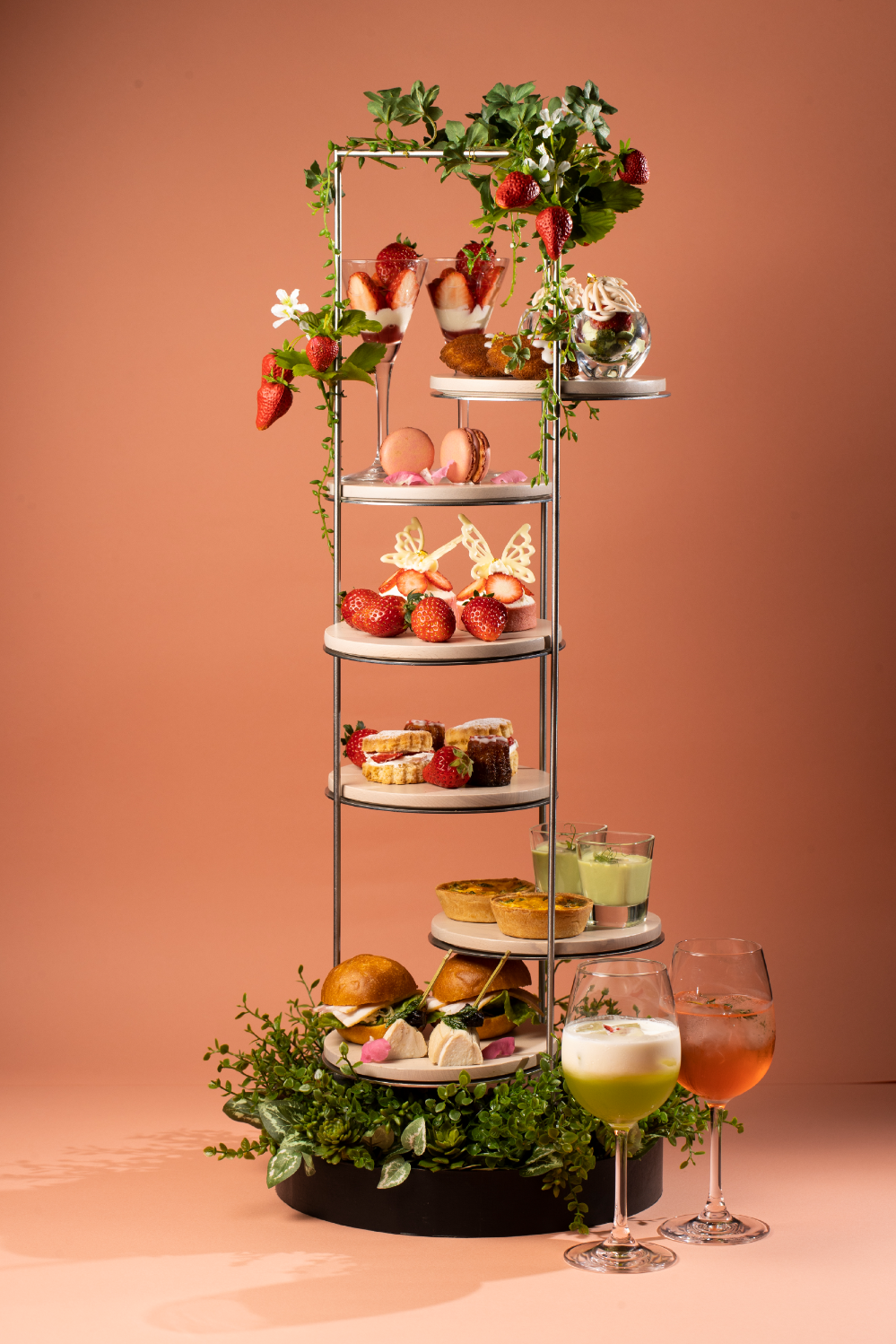 ナイトタイムには、春を感じる食材を使ったシェフ渾身のスペシャルコース「MOON Light High Tea -2023 Spring-」をご用意。いずれも4月末ごろまでの期間限定メニューです。まるで天空の森にいるような非日常空間の中で、絶景とともにお花見気分を味わえる特別メニューをお楽しみください。