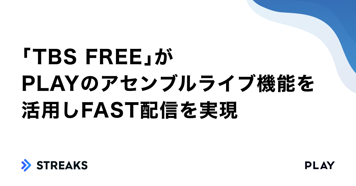 株式会社PLAY(本社:東京都渋谷区、代表取締役社長:黒田和道)は、株式会社TBSテレビ(本社:東京都港区、代表取締役社長:佐々木卓)が運営する無料配信サービス「TBS FREE」において新しくスタートしたリニア配信チャンネル「TBSセレクト」の技術パートナーとして選ばれたことを発表します。このチャンネルでは、当社のオンラインビデオプラットフォーム「STREAKS」の最新機能であるアセンブルライブが採用されています。