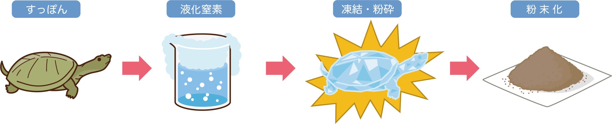 熊本県山鹿市の井寺スッポン養殖場で育てられた最高品質のすっぽんを原料に使用しています。阿蘇菊池の豊富な水源と農薬や抗生物質不使用の餌で育てられた安全・安心なすっぽんを、イワタニの独自技術「凍結粉砕法」により栄養素を変性させることなく、まるごと微粉砕化し「鼈美力」に使用しています。この凍結粉砕されたすっぽん粉末には、アミノ酸、ビタミン、ミネラル、脂肪酸などの栄養素がバランスよく70種類含まれています。