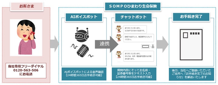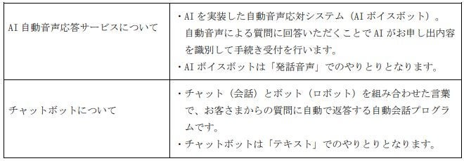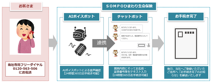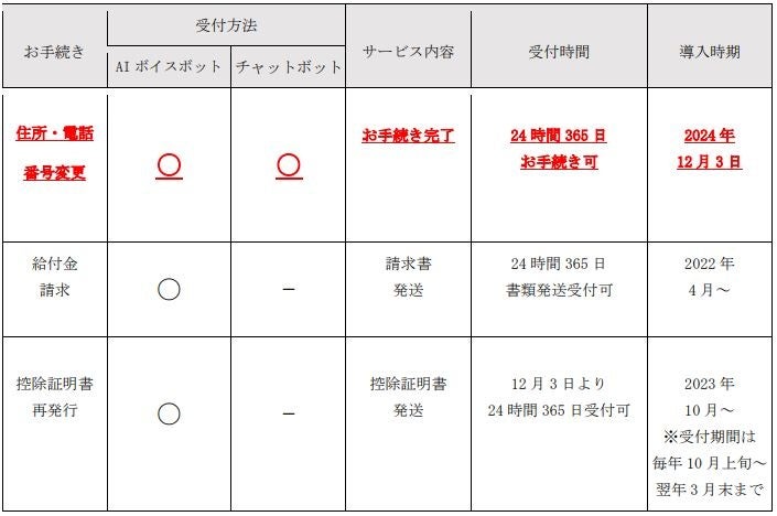 このたび、AI自動音声応答サービスにチャットボットを連携させた「住所・電話番号変更手続き」機能を新たに導入し、お電話がつながりにくい場合でも、24時間365日お待たせすることなくお手続きが完結できるサービスを開始いたします。