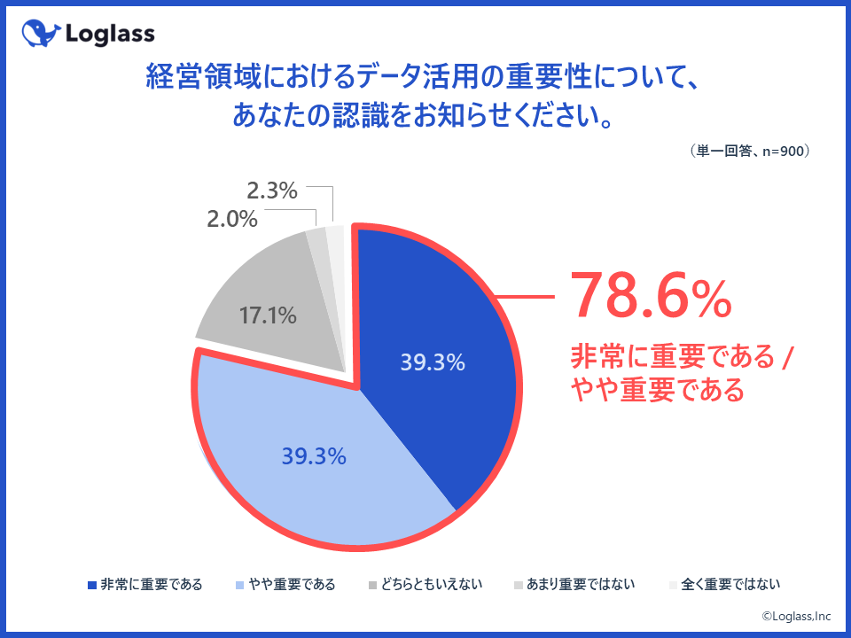 経営領域におけるデータ活用の重要性について、認識を質問したところ、全体の約8割(78.6%)の企業が「重要である」と回答。