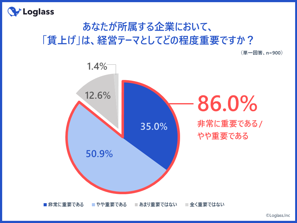 賃上げが、経営テーマとしてどの程度重要であるかを質問したところ、全体の約9割(86.0%)が「重要である」と回答。