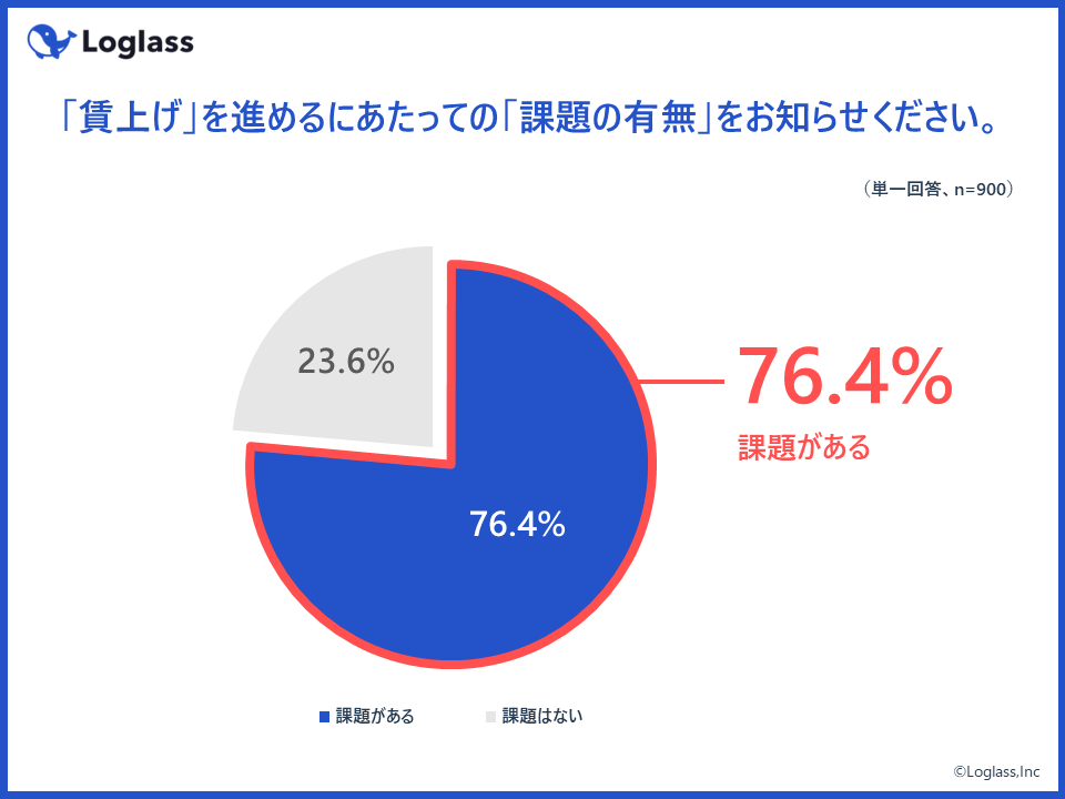 次に、賃上げを進めるにあたっての「課題の有無」を聞いたところ、全体の約8割(76.4%)の企業が「課題がある」と回答。