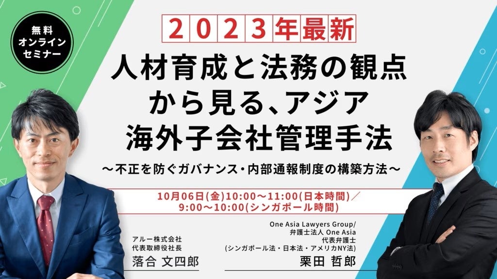 2023年10月6日(金)開催 「2023年最新 人材育成と法務の観点から見る、アジア海外子会社管理手法」