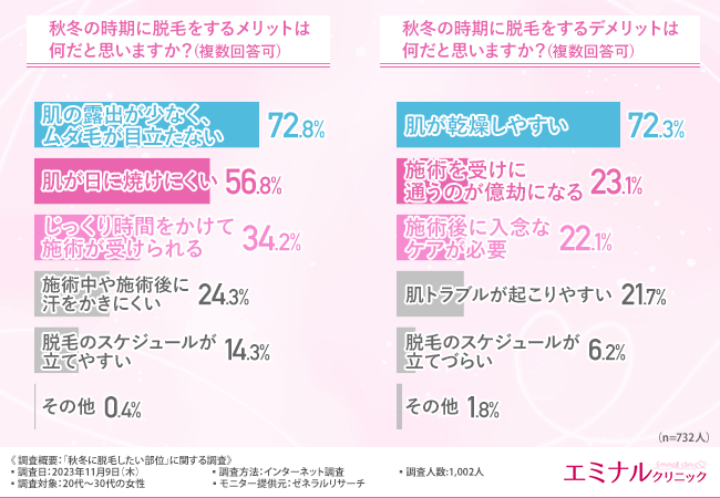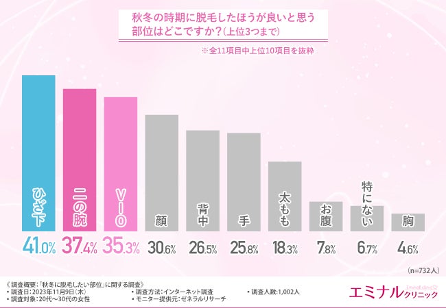 今回、「秋冬に脱毛したい部位」に関する実態調査を実施したエミナルクリニック(https://eminal-clinic.jp/lp01/?refmedia=11073)は、