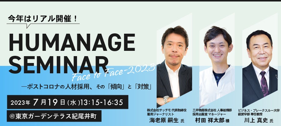 【三井物産・川上真史氏・海老原嗣生氏登壇!】『HUMANAGE SEMINAR Face to Face 2023――ポストコロナの人材採用、その「傾向」と「対策」』を開催