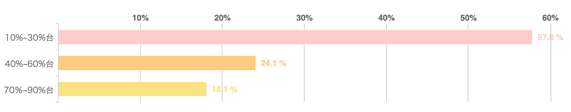 次いで、「40%〜60%台」が24.1%、「70%〜90%台」が18.1%と続いており、20代が様々な資産クラスを組み合わせて運用していることが読み取れる。