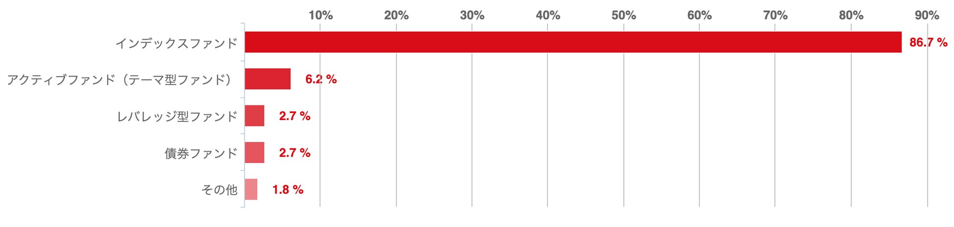 次いで、少数派ながらも「アクティブファンド(テーマ型ファンド)」が8.0%、さらに「レバレッジ型ファンド」と「債券ファンド」がそれぞれ3.6%の投資家から選ばれている。一方、「REIT型ファンド」を選択しているのは0.9%に留まった。