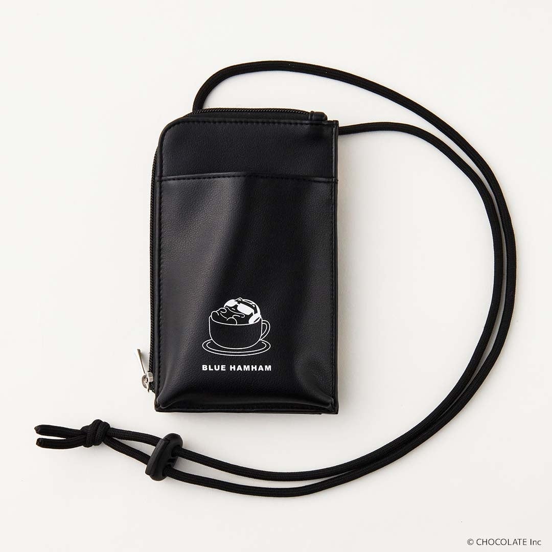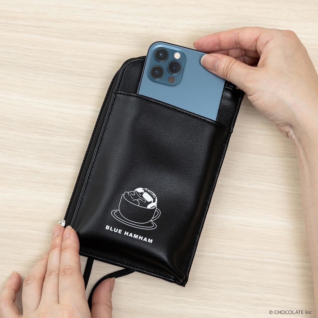 ▶ブルーハムハムがプリントされたフロントにはスマートフォンを、ポーチ部分にはカードを収納!ちょっとしたお出かけに便利なスマホポシェット