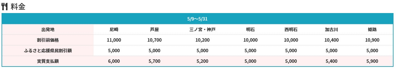 ※播但豊岡エリアの方は、料金を算出いたしますので、お問合せください。対象コース: