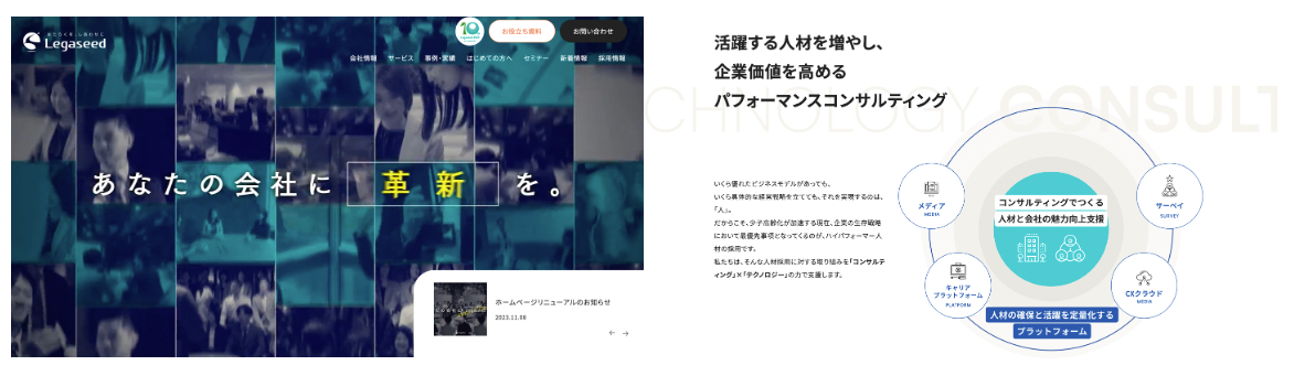 (左)〜2023年10月 旧Legaseed公式サイト /(右)2023年11月〜 新Legaseed公式サイト