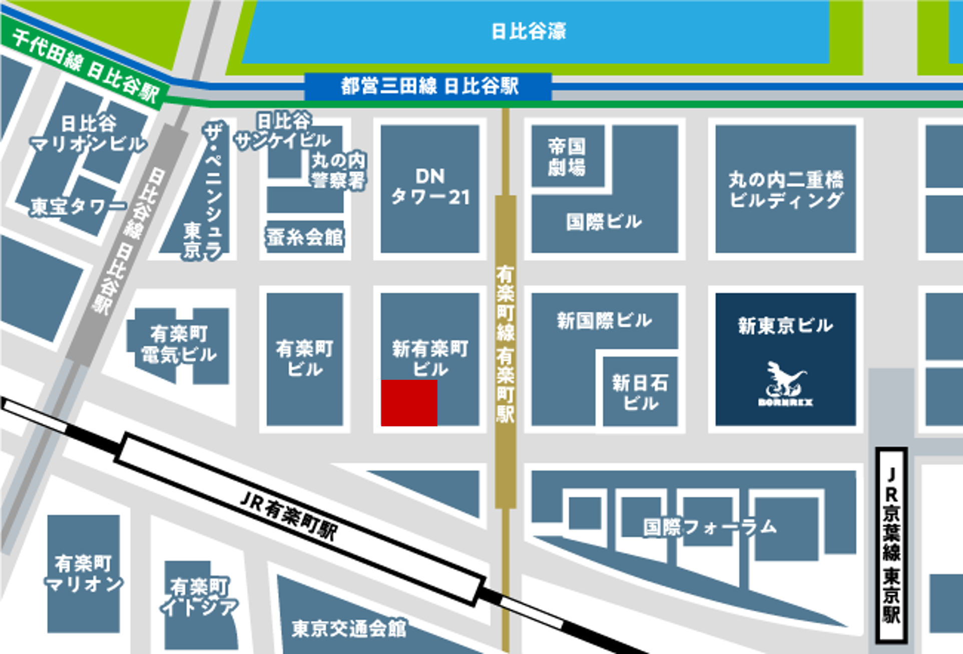 アクセス | 東京メトロ有楽町線有楽町駅D2出口より直結 JR山手線・京浜東北線有楽町駅中央西口より徒歩1分 都営三田線日比谷駅B1出口より徒歩2分 東京メトロ日比谷線・千代田線日比谷駅A3出口より徒歩2分 |