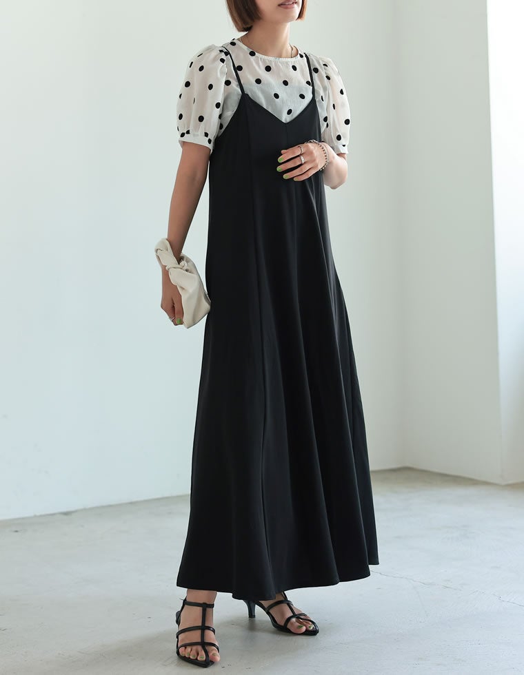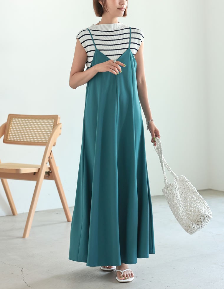 すとんと落ち感のあるフレアシルエットが、優美な印象を演出するキャミワンピース。