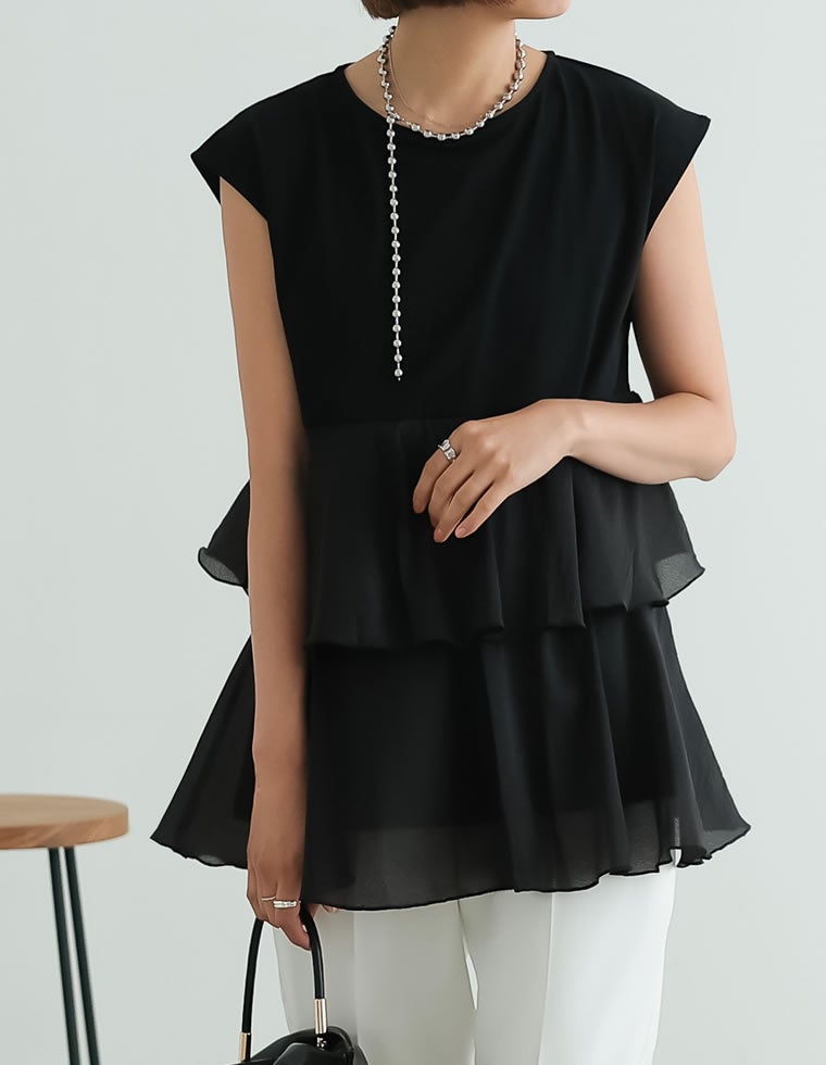 人気上昇中のティアードシルエットを楽しむ、フレンチスリーブカットソー