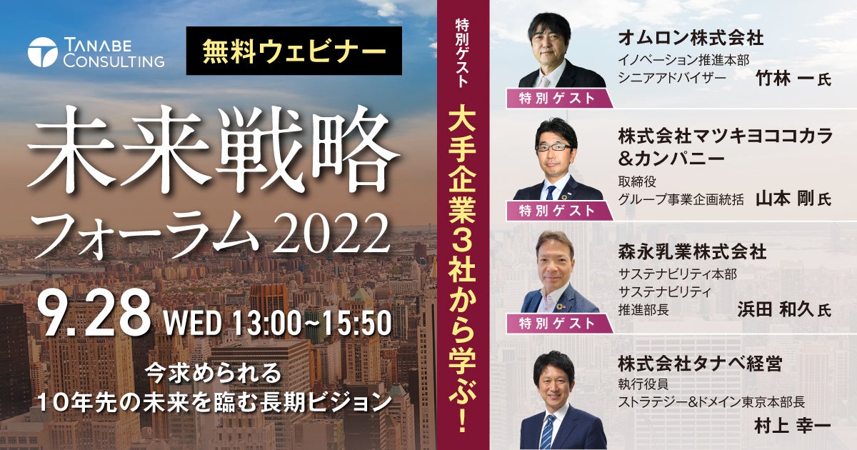 オムロン㈱・㈱マツキヨココカラ&カンパニー・森永乳業㈱がゲスト講演!未来ビジョンに組み込むべきDX、M&A、SDGs戦略とは。未来戦略フォーラム2022~今求められる10年先の未来を臨む長期ビジョン~