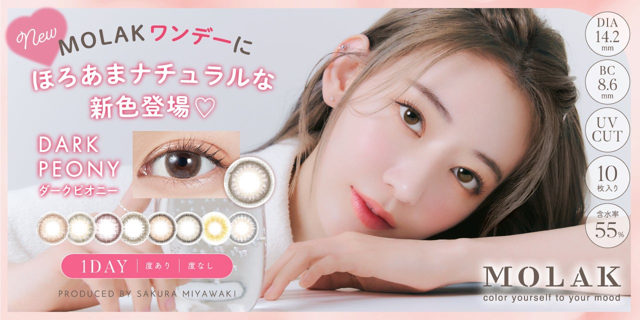 宮脇咲良プロデュース・イメージモデルカラコン『MOLAK(モラク)』本日より発売開始!“ほろあまナチュラル”な1DAYシリーズ新色「Dark Peony 1DAY(ダークピオニーワンデー)」