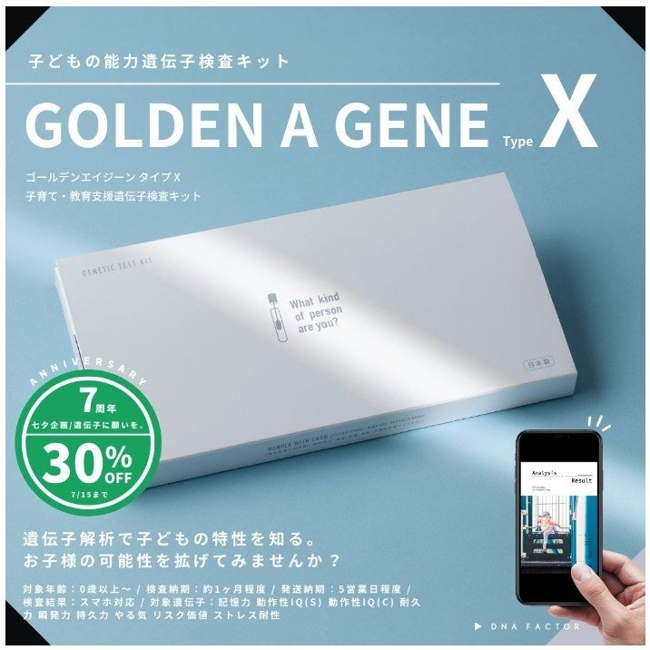 株式会社アルプロンのグループ会社、DTCフィールドで子ども向けの能力遺伝子検査数最大シェア数を誇る株式会社DNA FACTOR(福岡県福岡市:代表取締役 多根和宏)は、創業7周年の記念イベントとして7月7日の七夕にちなんだ【七夕企画・遺伝子に願いを】を開催。遺伝子検査キットが全て30%OFFのキャンペーンを実施致しました。