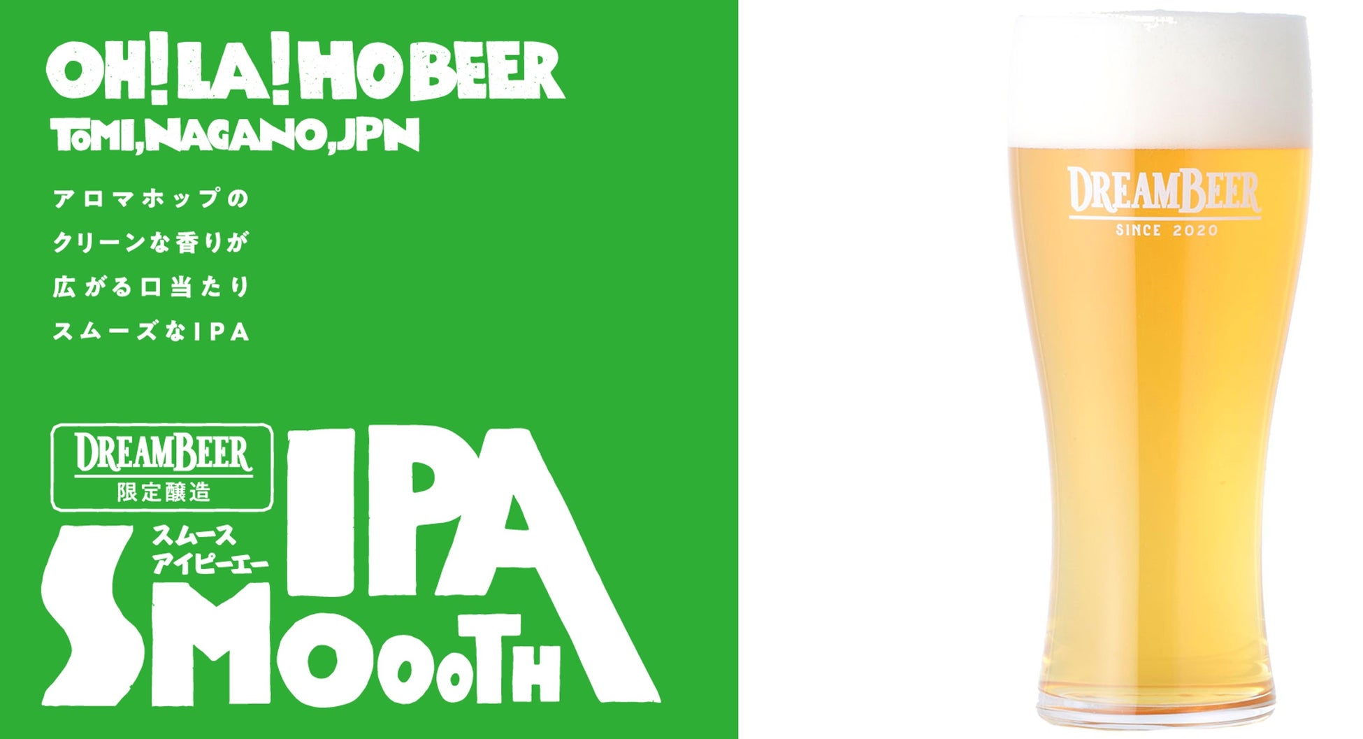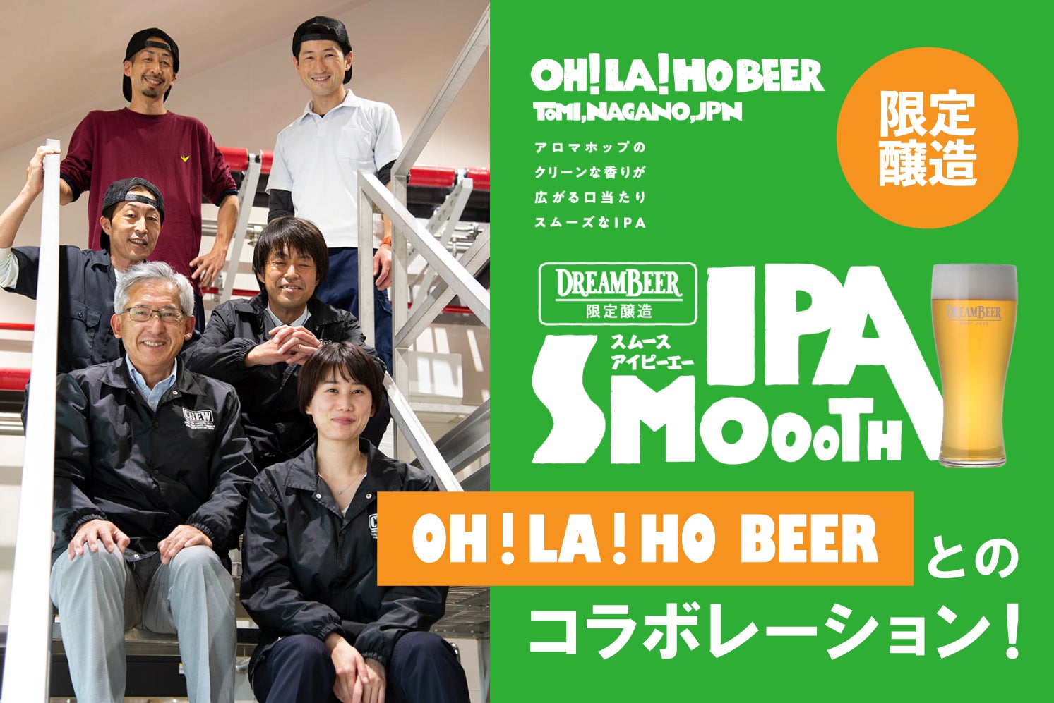 この度、ドリームビア初の限定醸造ビール「SMOOTH(スムース) IPA」の取り扱いを、OH!LA!HO BEER(以下「オラホビール」)とのコラボレーションにより開始いたします。“スムース”の名前のとおり、苦みを抑えた柑橘系の香りが華やかなIPAなので、どなたにも飲みやすく、クラフトビール初心者の方にもおすすめの銘柄となっております。友人やご家族との幸せなひとときを、特別なビールを片手にお愉しみください。