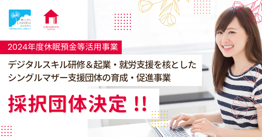 一般財団法人グラミン日本(本社:東京都中央区、理事長:百野公裕、以下「グラミン日本」)は、一般財団法人日本民間公益活動連携機構(JANPIA)(所在地:東京都千代田区、理事長:二宮雅也、英文名:Japan Network for Public Interest Activities、略称:JANPIA)の2024年度通常枠公募の休眠預金等活用法(*)に基づく資金分配団体として、デジタルスキル研修&起業・就労支援を核としたシングルマザー支援団体の育成・促進事業の実行団体を公募いたしました。