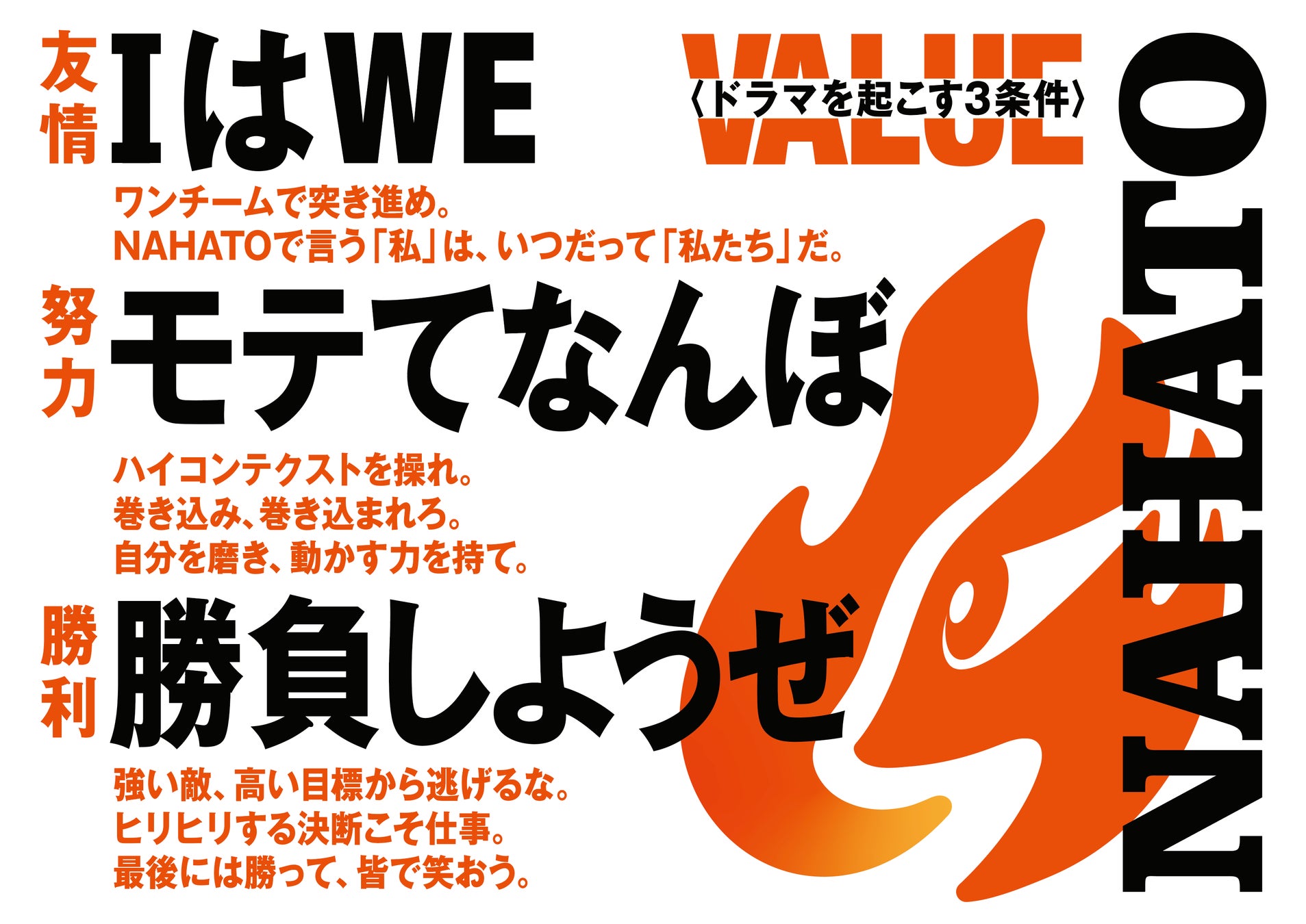 「僕から見て、ナハトは令和時代のサイバーエージェントになる存在だと思っています。かつてネット広告がマス広告を超えていったように、SNSを中心にマーケティングや広告のあり方を書き換えていく。強い組織をつくり、若者であってもバンバン新規事業を立ち上げていく。友情・努力・勝利を信じて、みんなで会社をデカくしていく。そんな圧倒的な熱量を持った会社は近年では珍しい。少年ジャンプの漫画の主人公たちが「ドラマを起こす」ように、ナハトは何かを起こしてくれると信じてます。その期待を込めて、リブランディングを手掛けさせていただきました。」