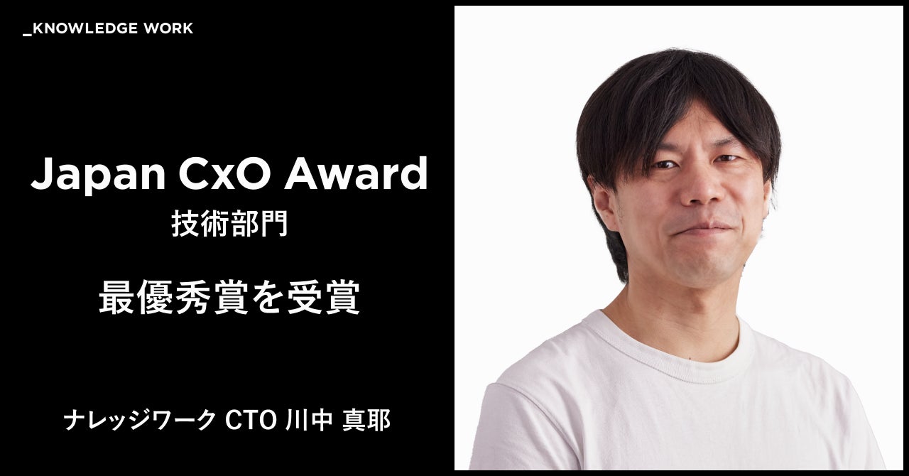 ナレッジワーク CTO 川中 真耶がJapan CxO Awardの技術部門で最優秀賞を受賞
