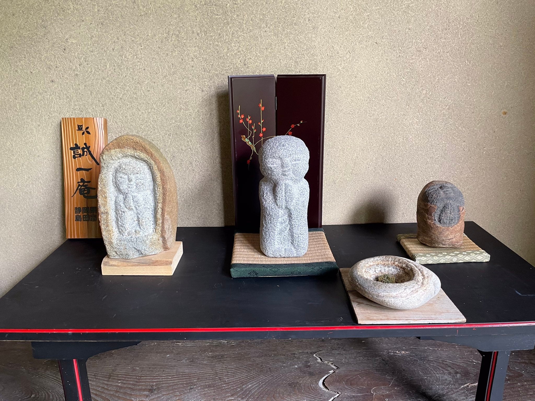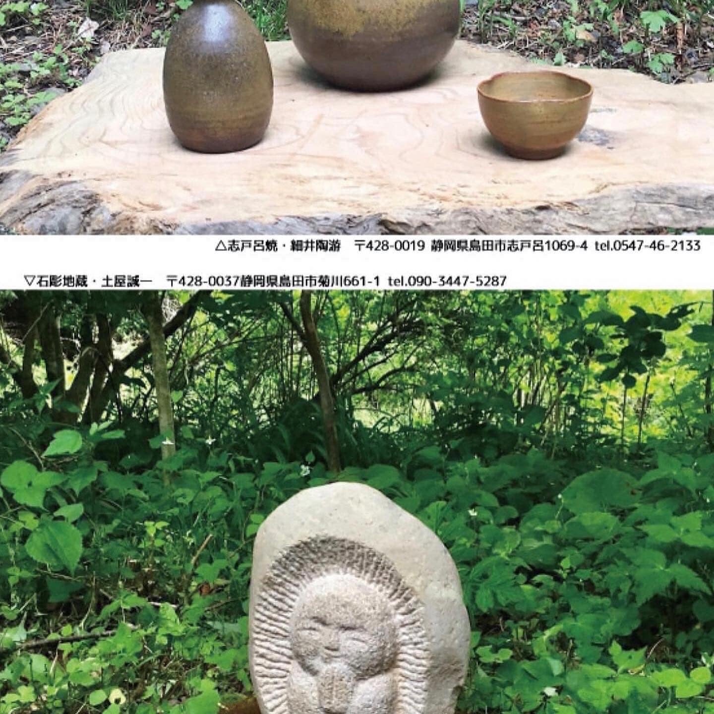 今年も志⼾呂焼の細井陶游さんと⽯彫刻の⼟屋誠⼀さんに⼆⼈展を開催していただきました。会期中は細井さんか土屋さんどちらかが必ず古寺におり、その場で志⼾呂焼や⽯彫地蔵をお買い求めいただくことができます。
