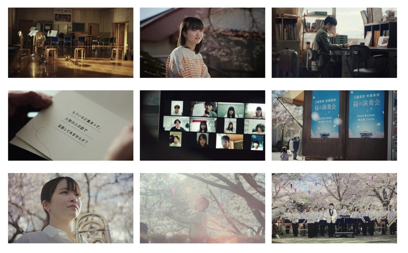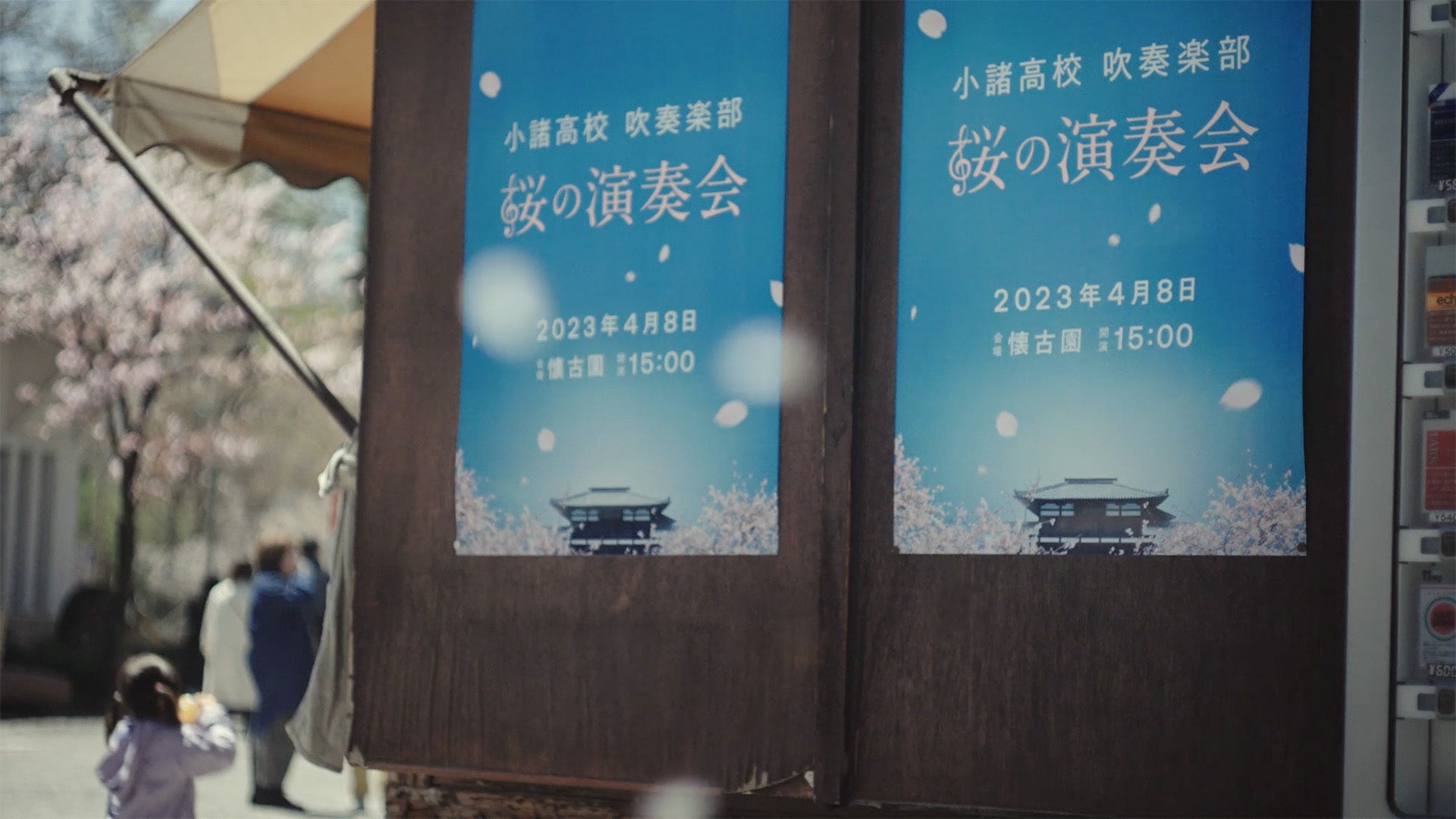 第1弾の主人公は長野県小諸高等学校吹奏楽部の部員たち。小諸高等学校は創立116年を迎えた伝統校で、吹奏楽部は常に県大会で優勝を狙うほどの強豪校です。2022年も見事県大会で優勝し、全国大会へと繋がる東海大会への出場を予定していました。しかし、大会の3日前に複数の部員の新型コロナウイルス感染が発覚。3年生にとって最後の大会であった東海大会出場を辞退することになり、悔いが残るままに卒業を迎えることになってしまいました。そんなやりきれない思いを抱えた吹奏楽部の顧問の先生のもとに「あの日からの招待状」が届きます。招待状には「もういちど集まって、大勢の人の前で演奏してみませんか?」というメッセージと共に、日本さくら名所100選にも選出されている懐古園での“桜の演奏会“開催の案内が。東海大会への出場を果たせなかった小諸高等学校の吹奏楽部員へ、最後の演奏の機会が与えられたのです。そして4月、吹奏楽部の卒業生たちが再会し、満開の桜と大勢の観客に囲まれて最後の“桜の演奏会”を行います。