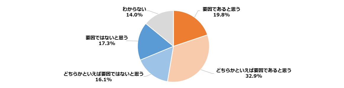 同一の放送会社に報道部門とエンターテインメント部門が併置されていることがコンプライアンス上の問題を起こす「要因であると思う」「どちらかといえば要因であると思う」が計52.7%、「要因ではないと思う」「どちらかといえば要因ではないと思う」は計33.4% だった。
