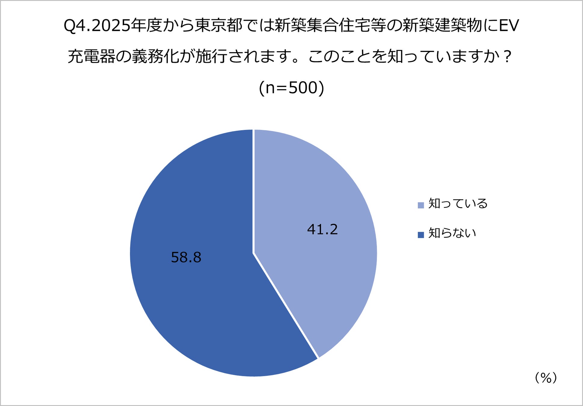 ■東京都の新築建築物へのEV充電設備設置義務化の認知度は41.2%。