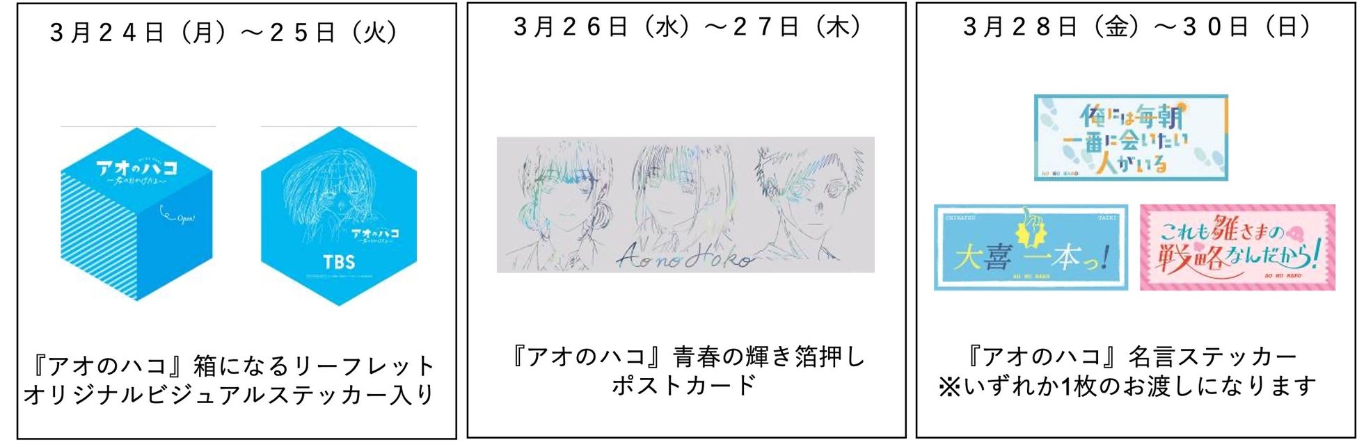 現在TBS系28局にて毎週木曜よる11時56分から全国同時放送中のTVアニメ『アオのハコ』。3月27日(木)の最終回放送が迫る中、渋谷の街全体を使用した最終回記念イベントがスタートした。