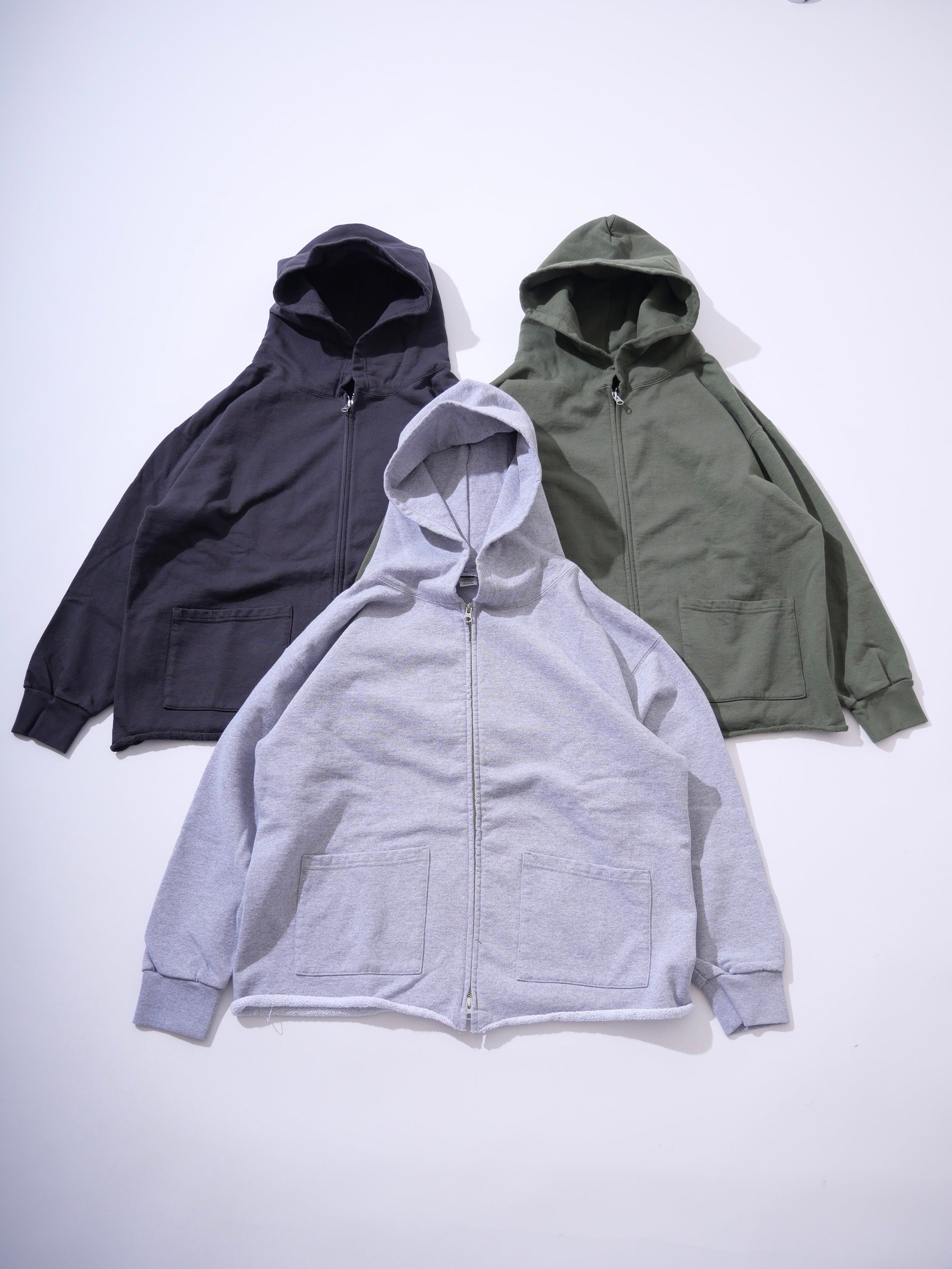 今回のPOP-UPイベントでは、毎シーズン好評のラインナップに加え、会期3日間限定のアイテムをご用意いたします。あわせて、〈HIGH! STANDARD〉のロングセラーである「13oz スウェットシリーズ」にフォーカス。13オンスの高密度ながら、裏地は起毛ではなく軽量パイル仕様を採用。重厚な見た目に反し、ロンTのような軽やかな着心地を実現するブランドの定番モデルです。