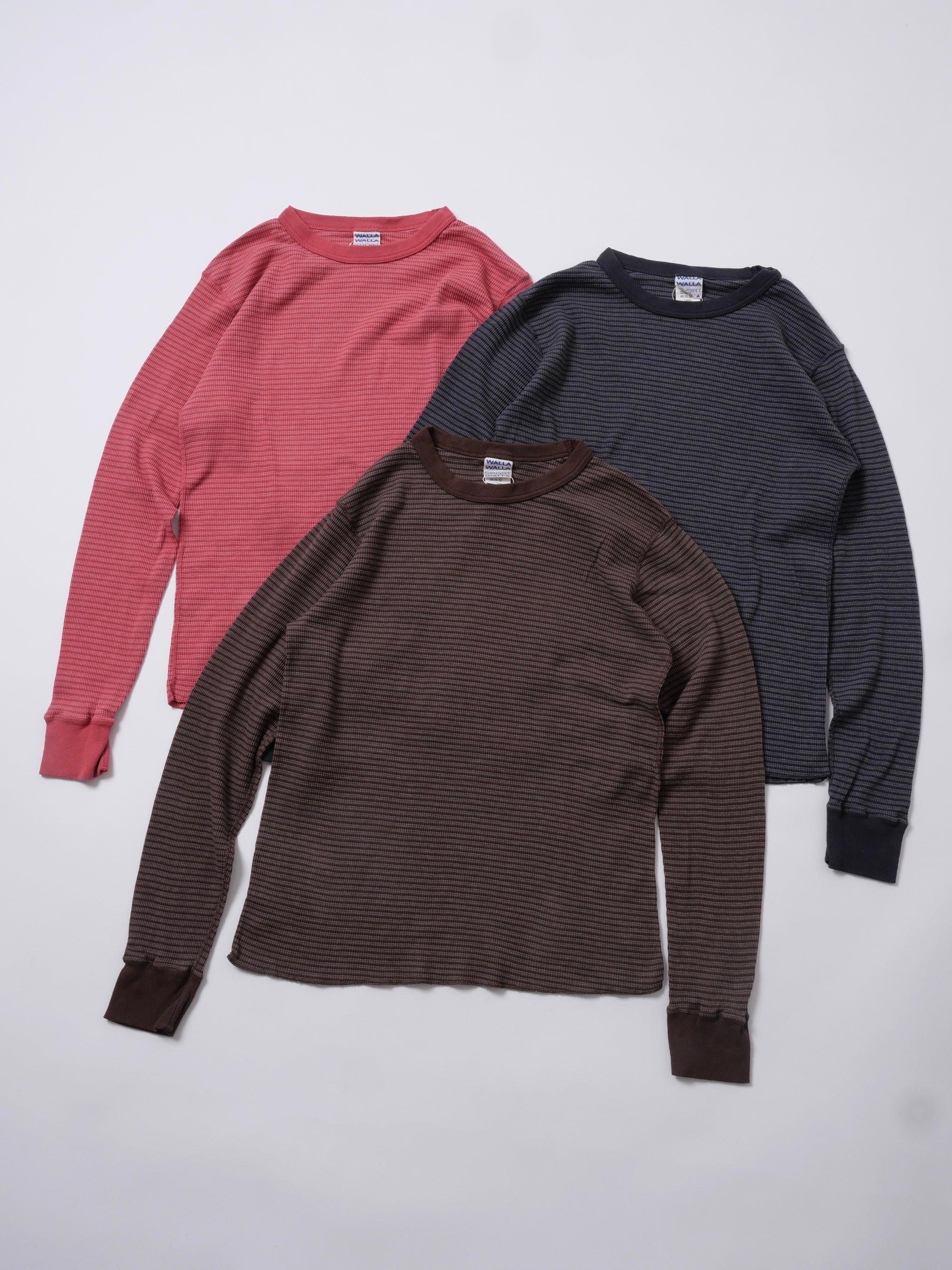 〈WALLA WALLA SPORT〉は、1960年代初頭よりサーフブランドやスポーツメーカー向けにカットソーを製造していたファクトリーをルーツに、1994年にロサンゼルスで誕生しました。確かな縫製技術と、日常に根差したベーシックなプロダクトで知られ、〈HIGH! STANDARD〉においても継続して展開しているブランドです。