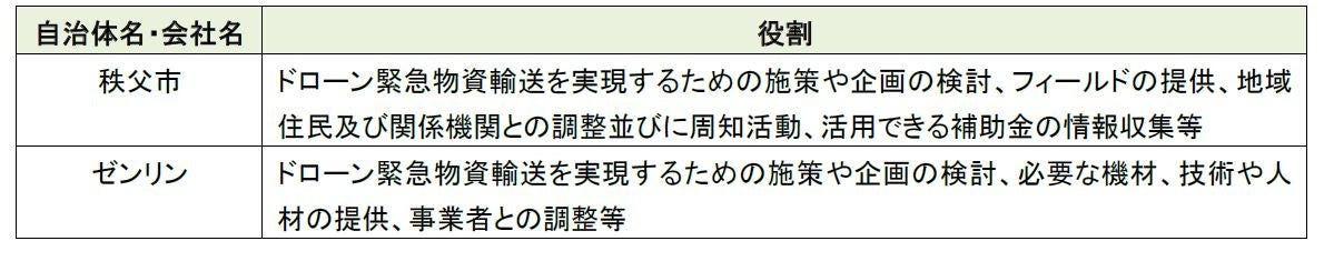 今回のドローン配送飛行対象となる中津川地内は山間地域の特性上、ドローンの遠隔飛行に必要な通信環境が脆弱であり、また、土砂崩落の影響で周辺に離発着地点の確保が困難な状況です。ドローン配送の実現が非常に難しい状況の中で、ゼンリンと秩父市は本協定に基づき、以下の事項で連携・協力し、緊急物資配送の早期実現を推進してまいります。