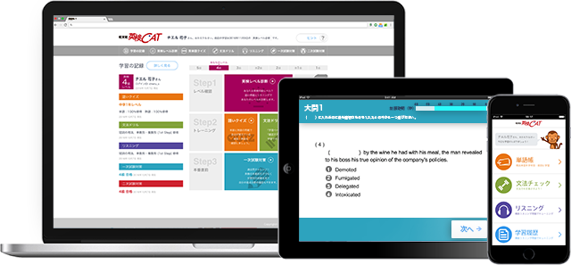 <チエルの『旺文社・英検® CAT』のインターフェースは、PC・タブレット・スマートフォンに対応>