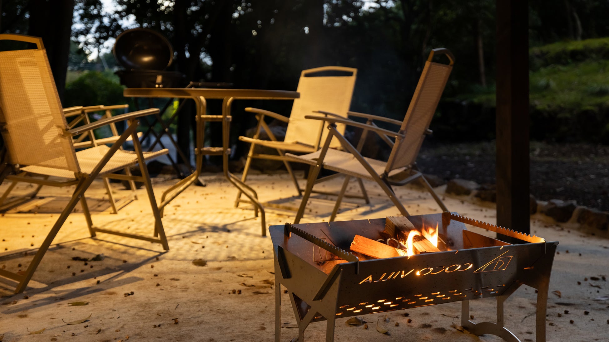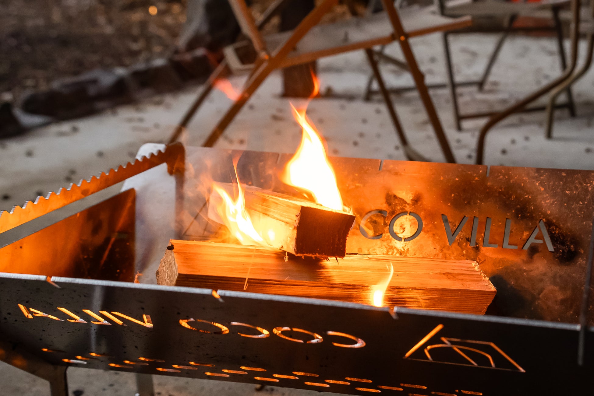 焚き火台には、COCO VILLAオリジナルのロゴをあしらい、ここでしか味わえない特別なひとときを演出しています。