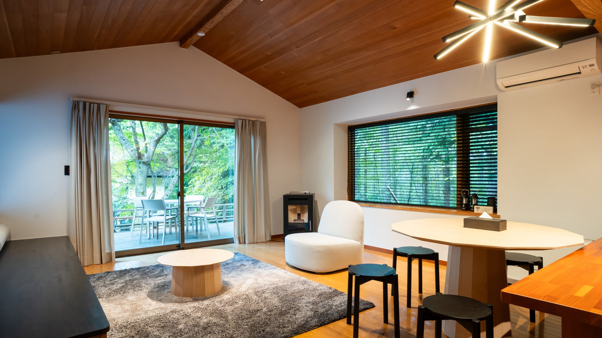 森の音がふっと届く静けさの中で、読書をしたり、語らったり。