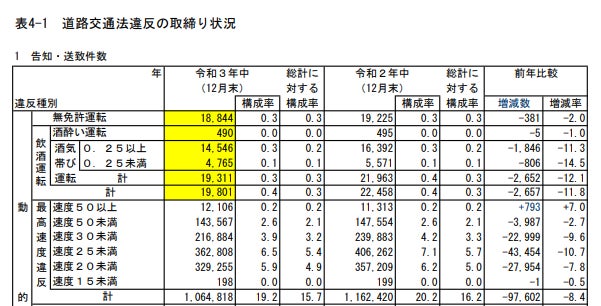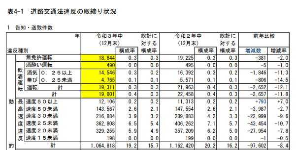 2022年3月3日、警察庁より、2021年度の全交通事故集計、全違反統計が公表されました。