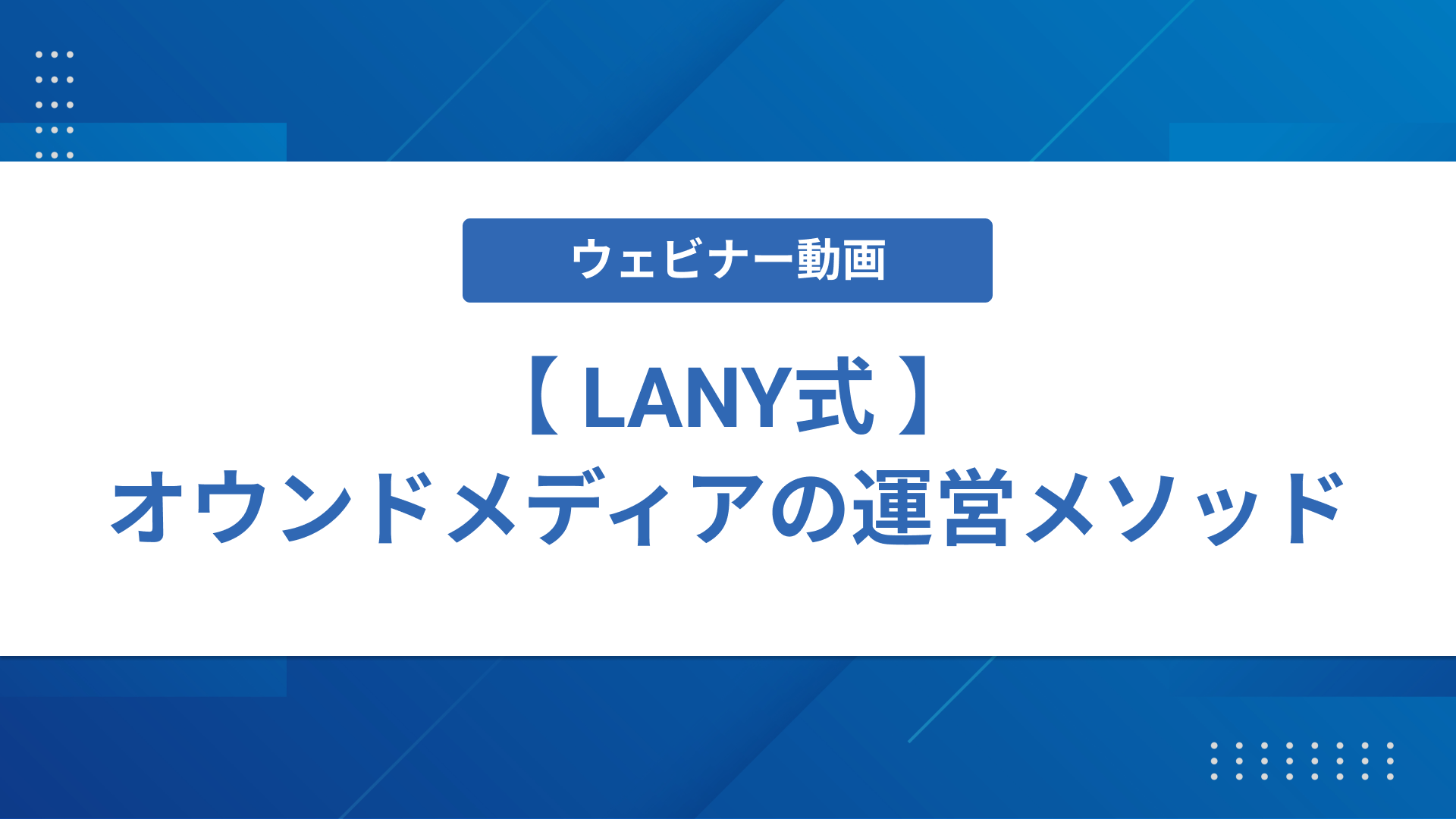 本動画は過去に行われたウェビナー「LANY式 オウンドメディアの運営メソッド」の本編の動画です。(Q&Aは含みません)