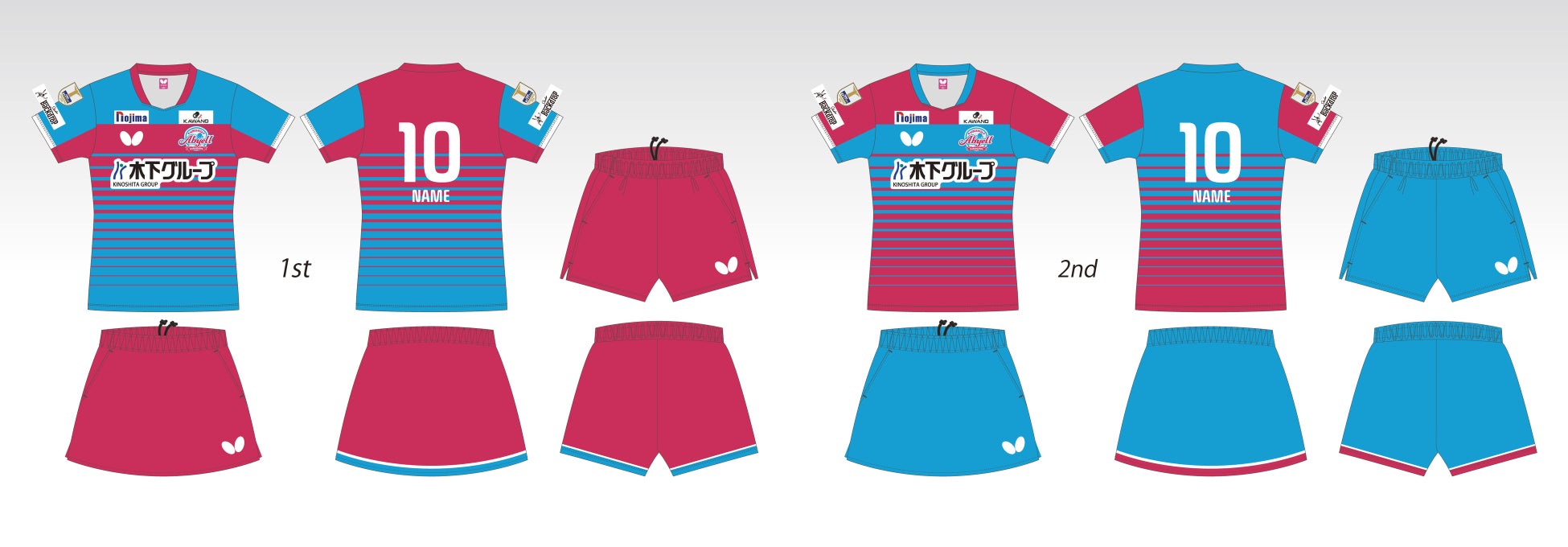 2025-2026シーズンもTリーグの男女全チームへ「バタフライ」ブランドのユニホームなどを提供できることを大変うれしく思います。男子は6シーズン目、女子は4シーズン目の提供となります。