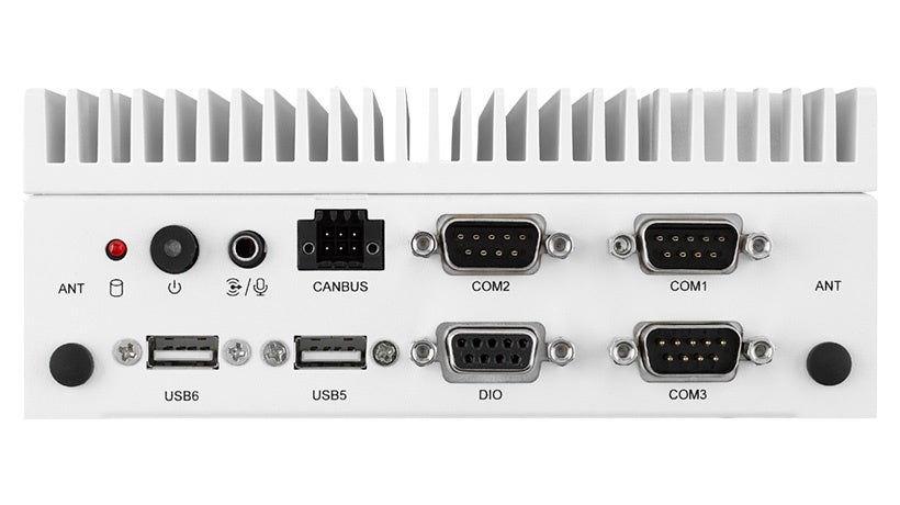 ファンレス設計の「EI-53」は、放熱性に優れたアルミニウム合金筐体を採用しており、動作温度は-20℃~60℃、DC電源は、12-24Vと幅広い入力範囲に対応しています。さらに、様々な環境での利用を想定し、外部からのノイズ耐久性の規格である「IEC 61000-6-4、6-2」や、耐振動「IEC60068-2-64」、耐衝撃「IEC60068-2-27」に準拠していますので、埃や熱、振動など外的影響を受けやすい場所でも安心してご利用いただける堅牢なエッジコンピュータです。