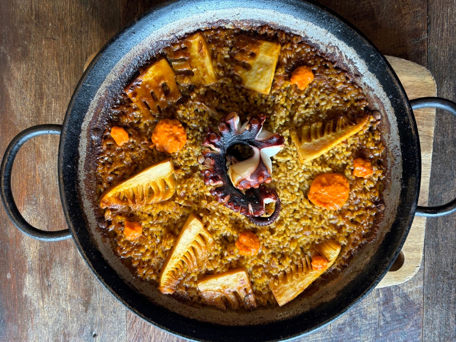 5,500円(税込)コースの内容に加え、パエリアが 真蛸と筍のパエリアになり、さらに特別な一皿に。