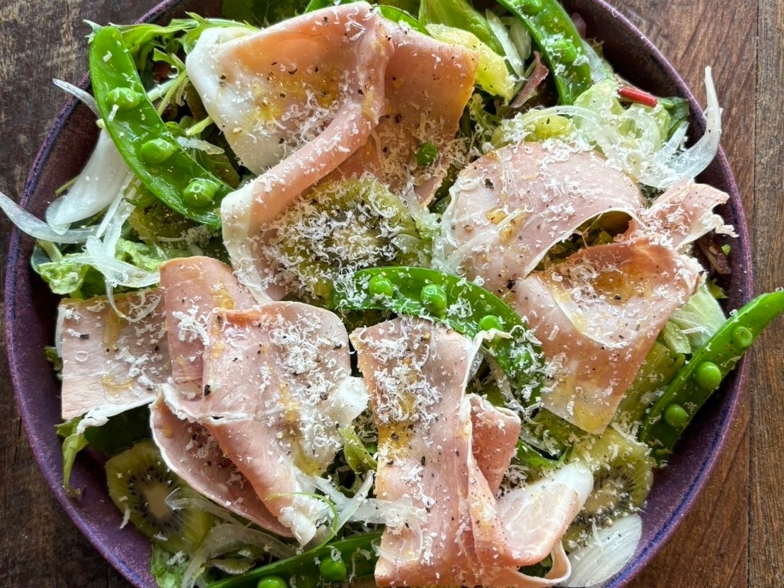 ・イタリア産パンチェッタコッタとキューイフルーツうるいのサラダ
