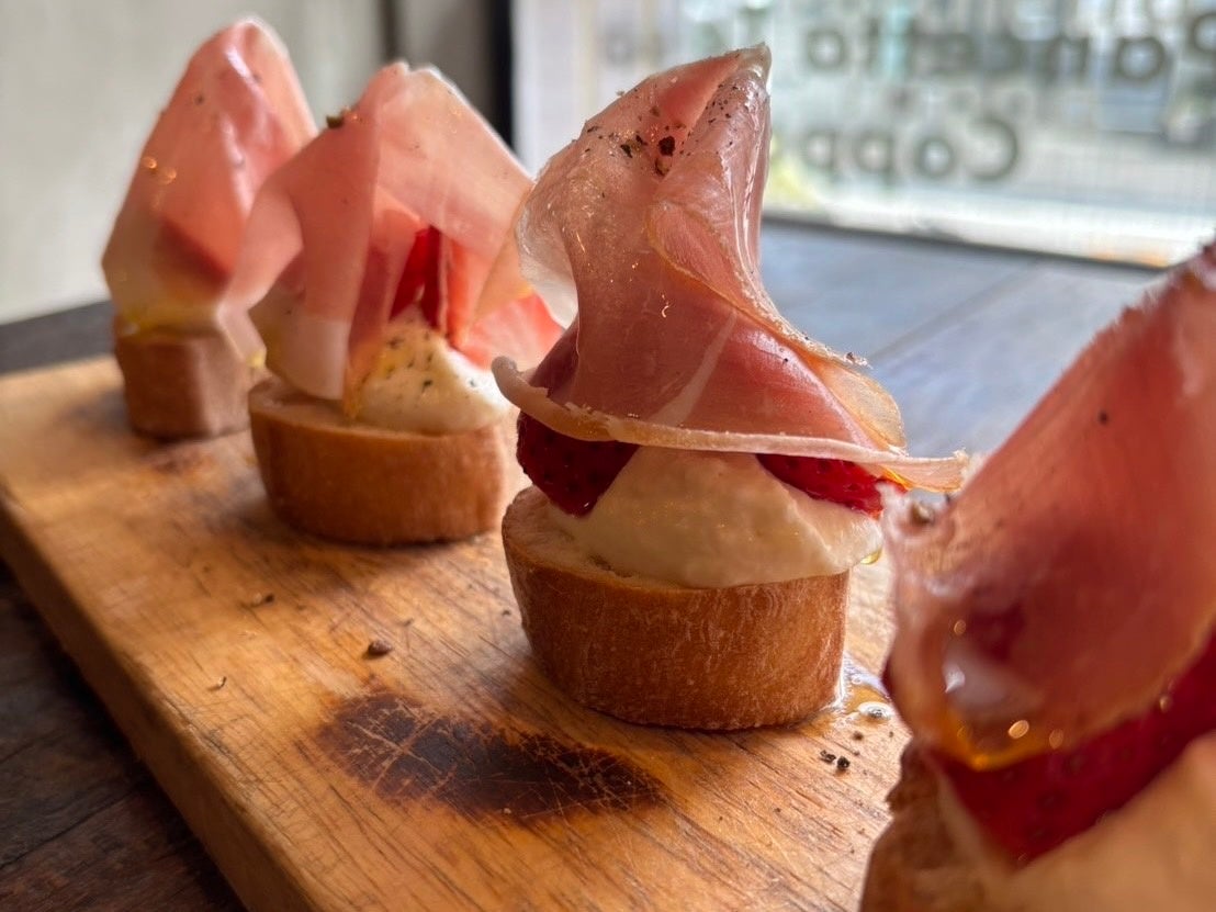 ・苺とストラッチャテッラ 生ハムのブルスケッタ