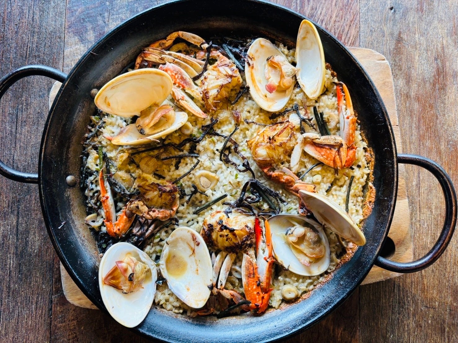 さらにパスタはAzzurro自慢のパエリア( わたり蟹と地蛤 山菜のパエリア)に変更した