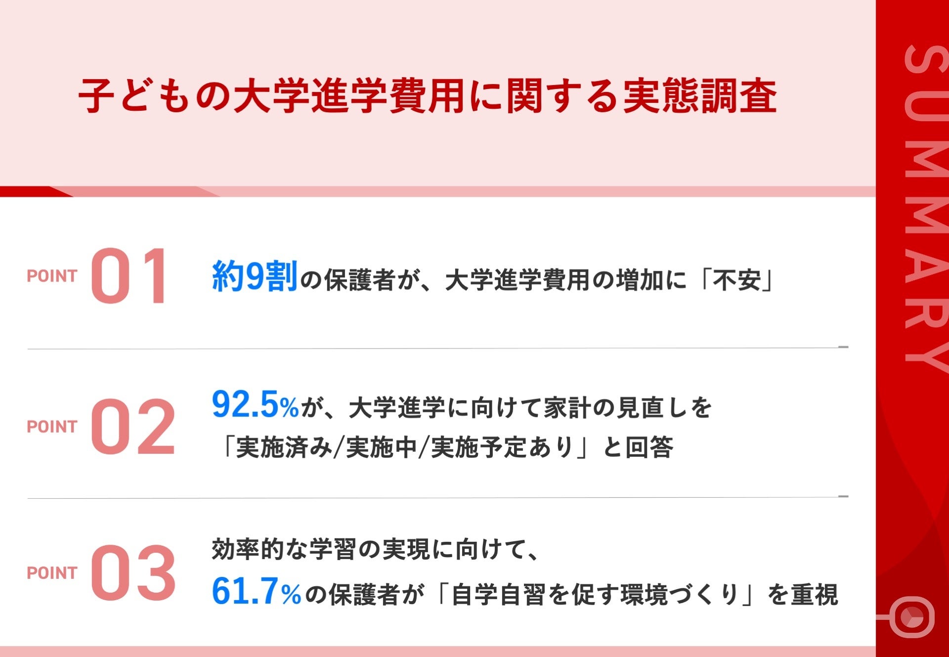 01|約9割の保護者が、大学進学費用の増加に「不安」