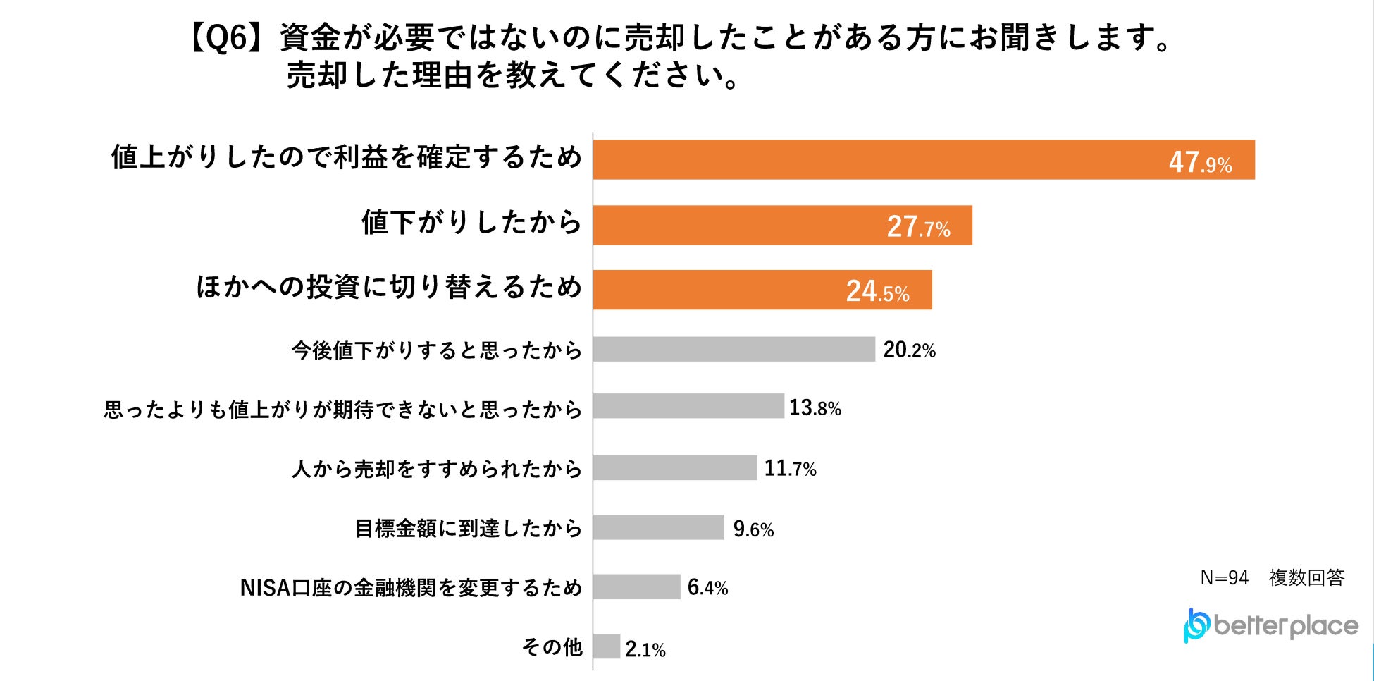 Q6. 資金が必要ではないのに売却したことがある方にお聞きします。売却した理由を教えてください。(複数回答可)