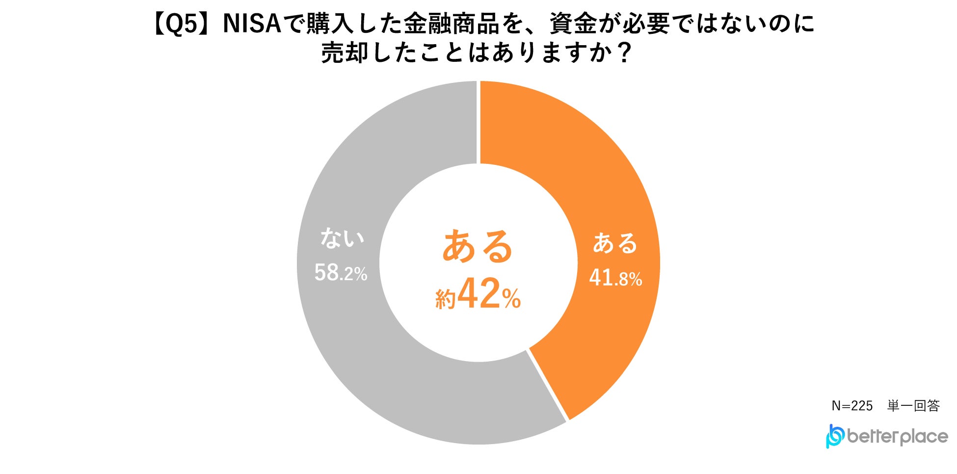 NISAを利用したことがある人で、資金が必要でないのに売却したことがある人は41.8%と4割以上いることがわかりました。
