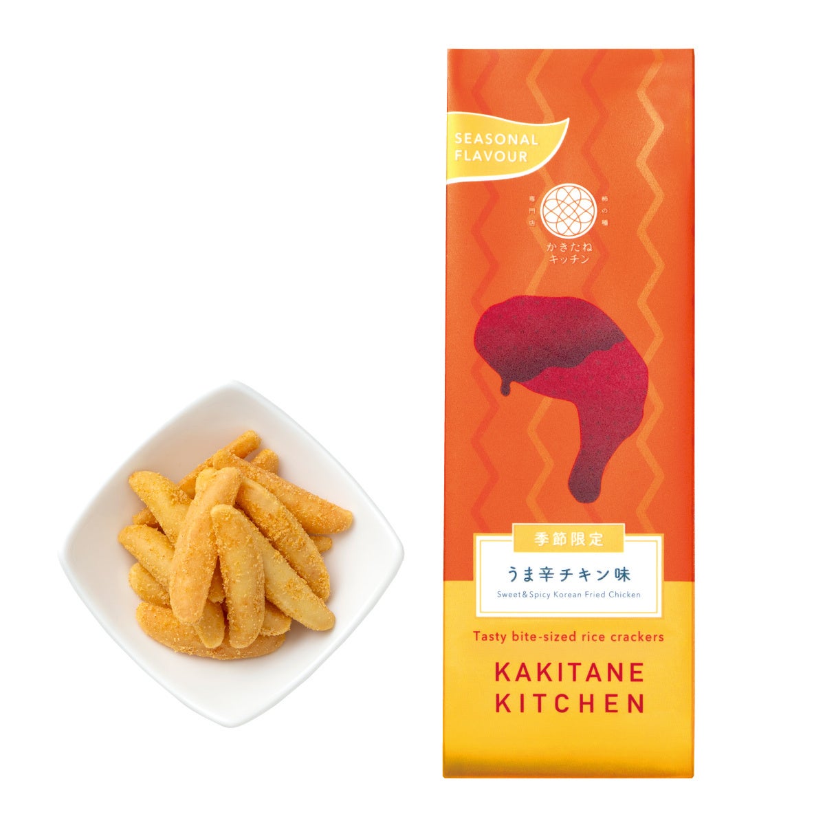 そんな想いから生まれたのが、『季節限定かきたね うま辛チキン味』です。日本でも人気の韓国料理「ヤンニョムチキン」をイメージし、にんにくの風味をほどよく効かせた、冬の食欲をそそるうま辛フレーバーに仕立てました。