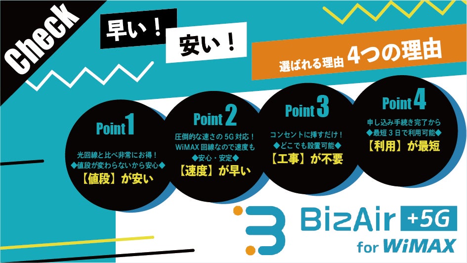 「Biz Air+5G」の導入3,000店舗突破並びに新商品「BizAir +5G for WiMAX」販売開始のお知らせ
